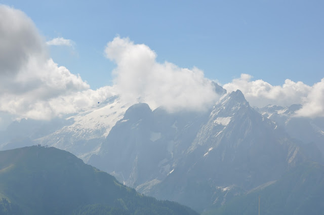 - Norine's squeak of excitement for the funivia of Pordoi appearing through the rocks.